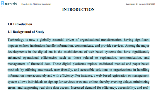 - Scroll through the document. AI-written text is highlighted in Blue as shown below: