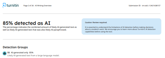 - Look at the report's second page to see the AI Use Percentage as shown below: