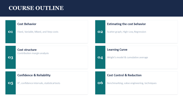 The Strategic Management Accounting course equips learners with the essential tools and techniques required to support strategic decision-making in dynamic business environments. This course focuses on cost information management, emphasizing its role in shaping planning, control, and competitive positioning. It introduces learners to strategic cost management, cost behavior analysis, product costing, short-term decision-making, pricing strategies, budgeting, and performance measurement.